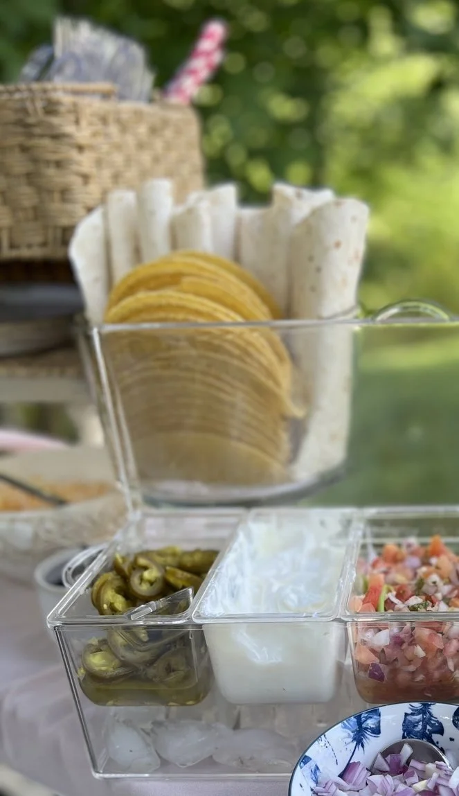 Keep It Fresh: Make sure to keep perishable items chilled with ice or in coolers, especially if it's a warm day. My condiment server was so perfect for this and allowed me to prep all cold topping the morning of the event and put in the fridge. Once you are ready, simply add ice to the bottom and everything stays fresh and cold. (Condiment server linked above)